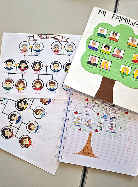 Die 1HW gestaltete fantasievolle árboles genealógicos und präsentierte ihre familia nach nur wenigen Monaten Lernzeit bereits souverän auf Spanisch - muy bien hecho.